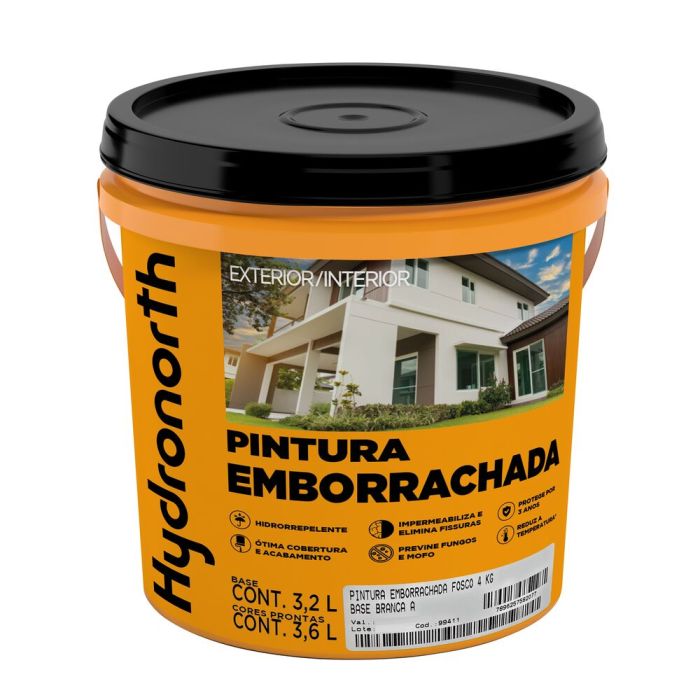 | Atenção | Pintura Emborrachada Impermeabilizante Hydronorth, depois de aplicada diretamente sobre a superfície desejada, forma uma membrana elástica de excelente desempenho que, além de proporcionar ótimo acabamento, diminui a absorção de água, protege as paredes c |
