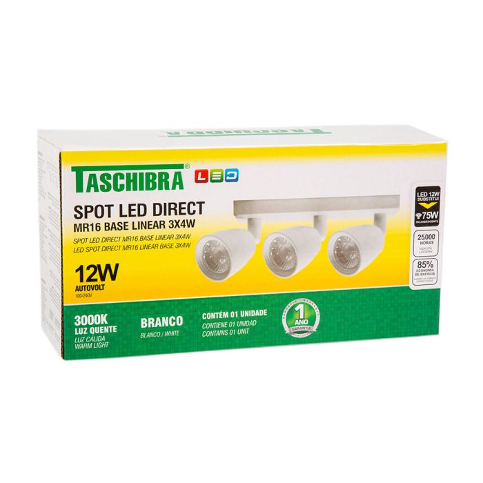 Trilho 3 Lâmpadas LED 12W Direct Linea 3000K Branco Luz Amarela Taschibra