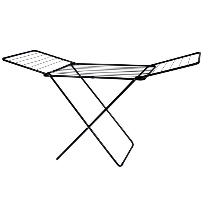 Fabricado em tubo de aço com acabamento em pintura epóxi a pó preta, este varal garante durabilidade e resistência. As peças plásticas de polipropileno, incluindo as sapatas nos pés, protegem o piso contra arranhões e outros danos, oferecendo maior segurança durante o uso.