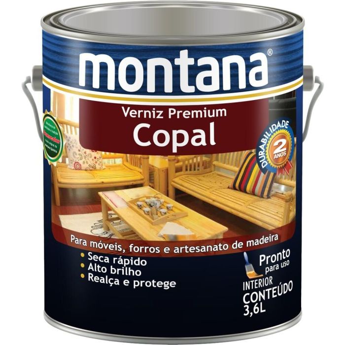 | Conteúdo da Embalagem | Verniz Copal Premium 3,6L Transparente Brilhante Montana |